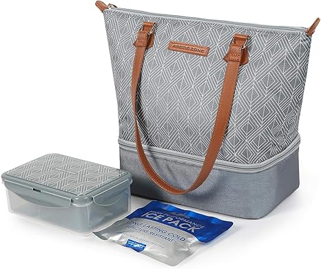 Dual lunch tote Outlet, Dual Compartment Lunch Bag with 3 Ice Walls Outlet