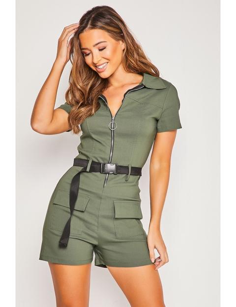 Combishort kaki Outlet, Combishort Kaki Zippée Et Ceinturée from Brentiny Paris on 21 Buttons Outlet