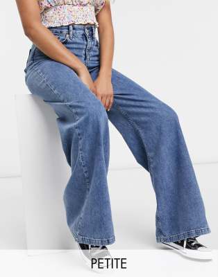 Jean large petite Outlet, ASOS PETITE - Jean large avec taille à bord brut - Bleu | ASOS Outlet