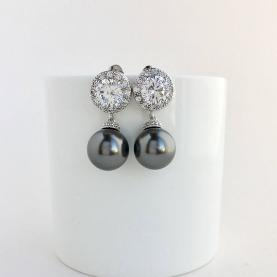 Dark grey earrings Outlet, Dark Grey Bridal Earrings Dark Grey Pearl Earrings Dark Grey | Etsy Outlet