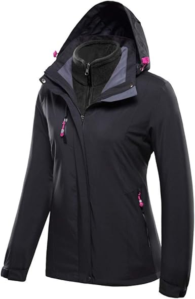 Ladies spring jacket with hood Outlet, KUSUOU Womens 3 in 1 Hoody Jacket Outlet