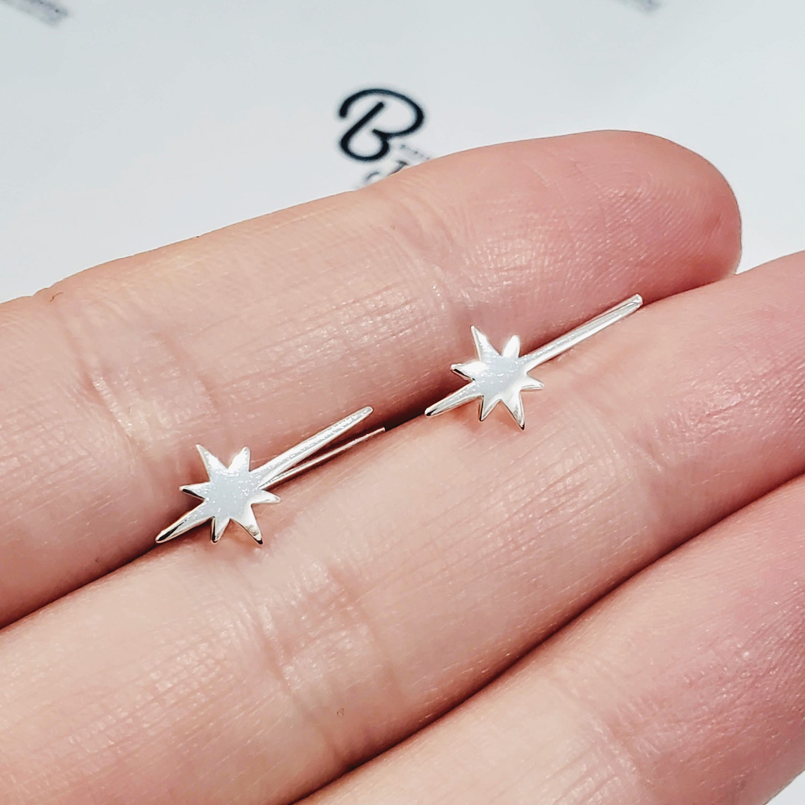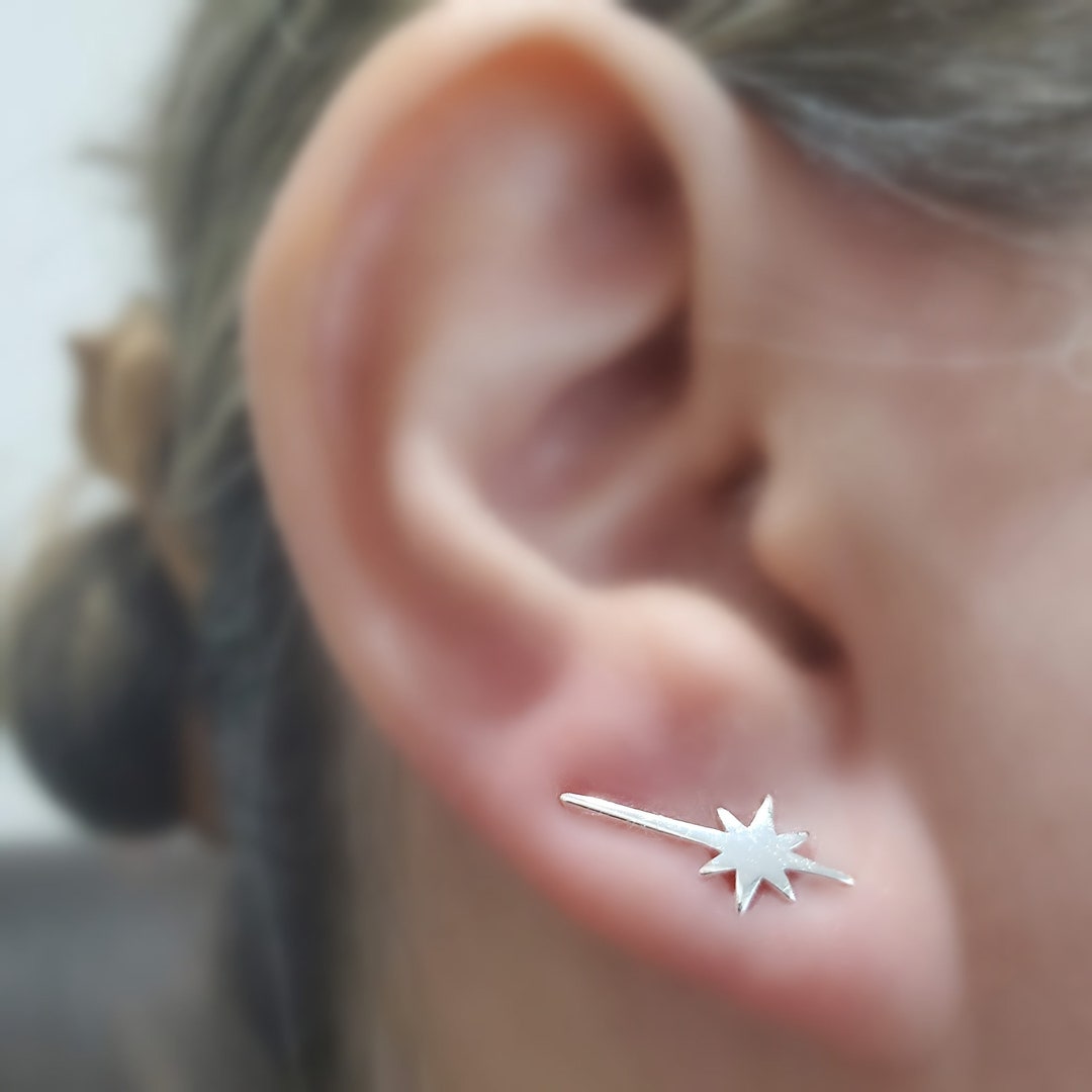 Silver star climber earrings Outlet, Silver Celestial Star Climber Earrings 925 Sterling Silver - Etsy Outlet