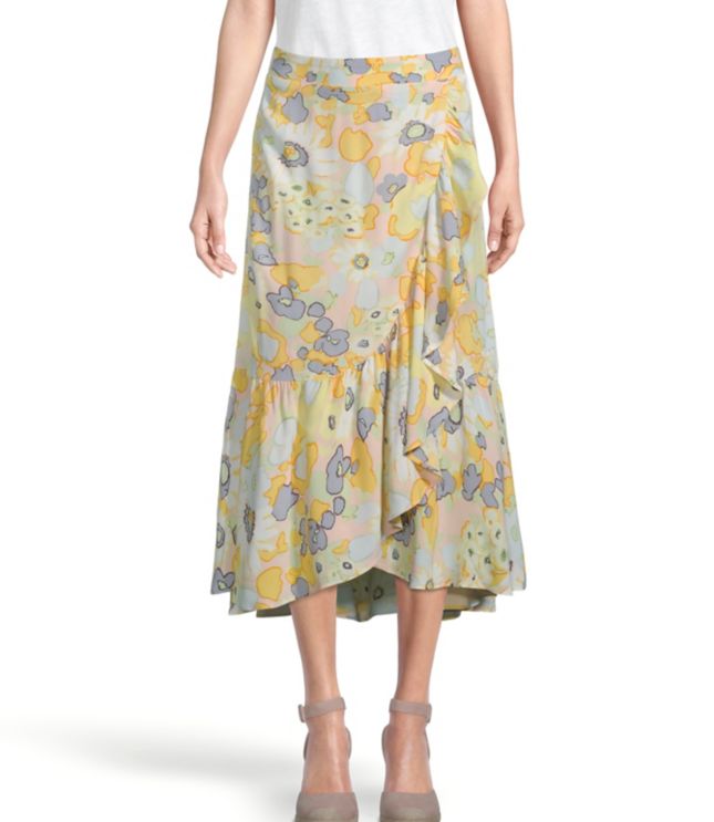 Yellow skirt loft Outlet, Floral Ruffle Wrap Midi Skirt Outlet