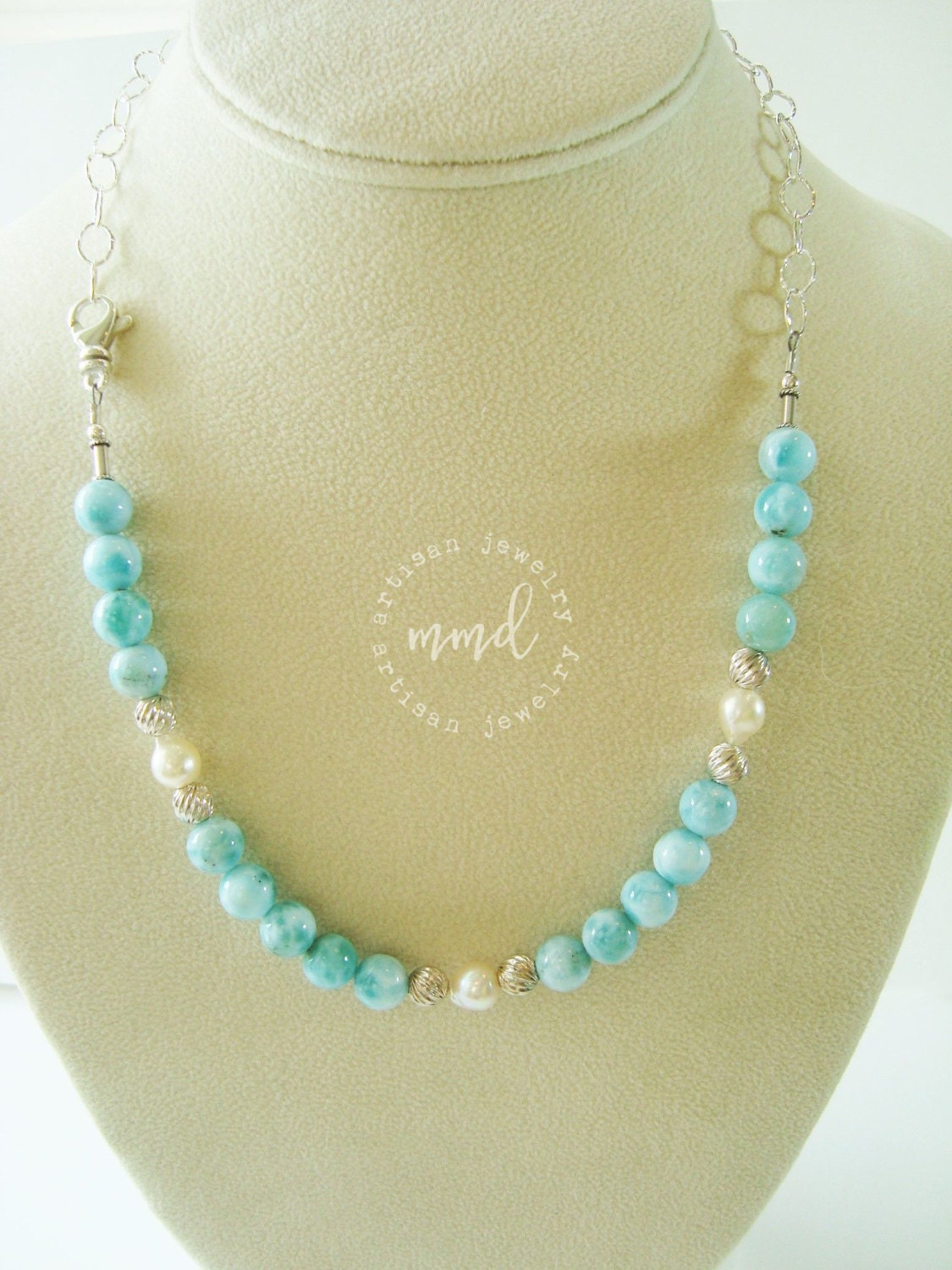 - Larimar and pearl necklace sale