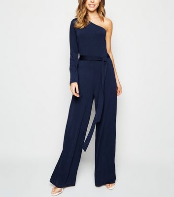 - One shoulder navy jumpsuit shop
