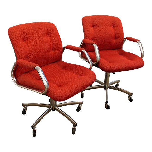 Steelcase red chair Outlet, Mid-Century Danish Modern Red Chrome Steelcase Office Chairs on Wheels - a Pair | Chairish Outlet