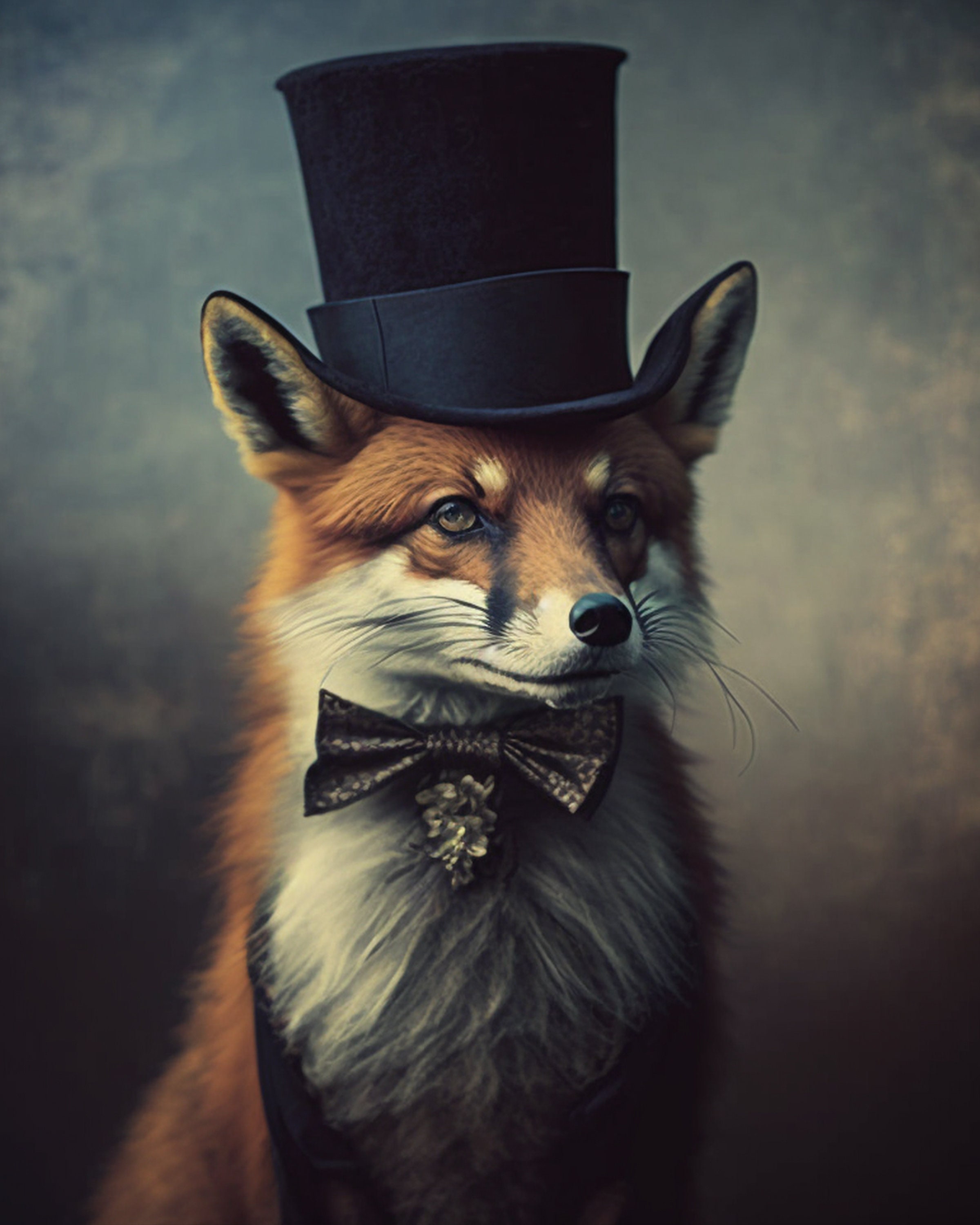 Fox with a hat Outlet, Premium AI Image | A fox wearing a top hat and a top hat is standing in front of a dark background. Outlet