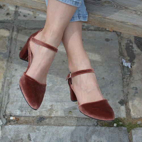 Brown velvet heels Outlet, Brown Velvet Stiletto Heels For Women Outlet