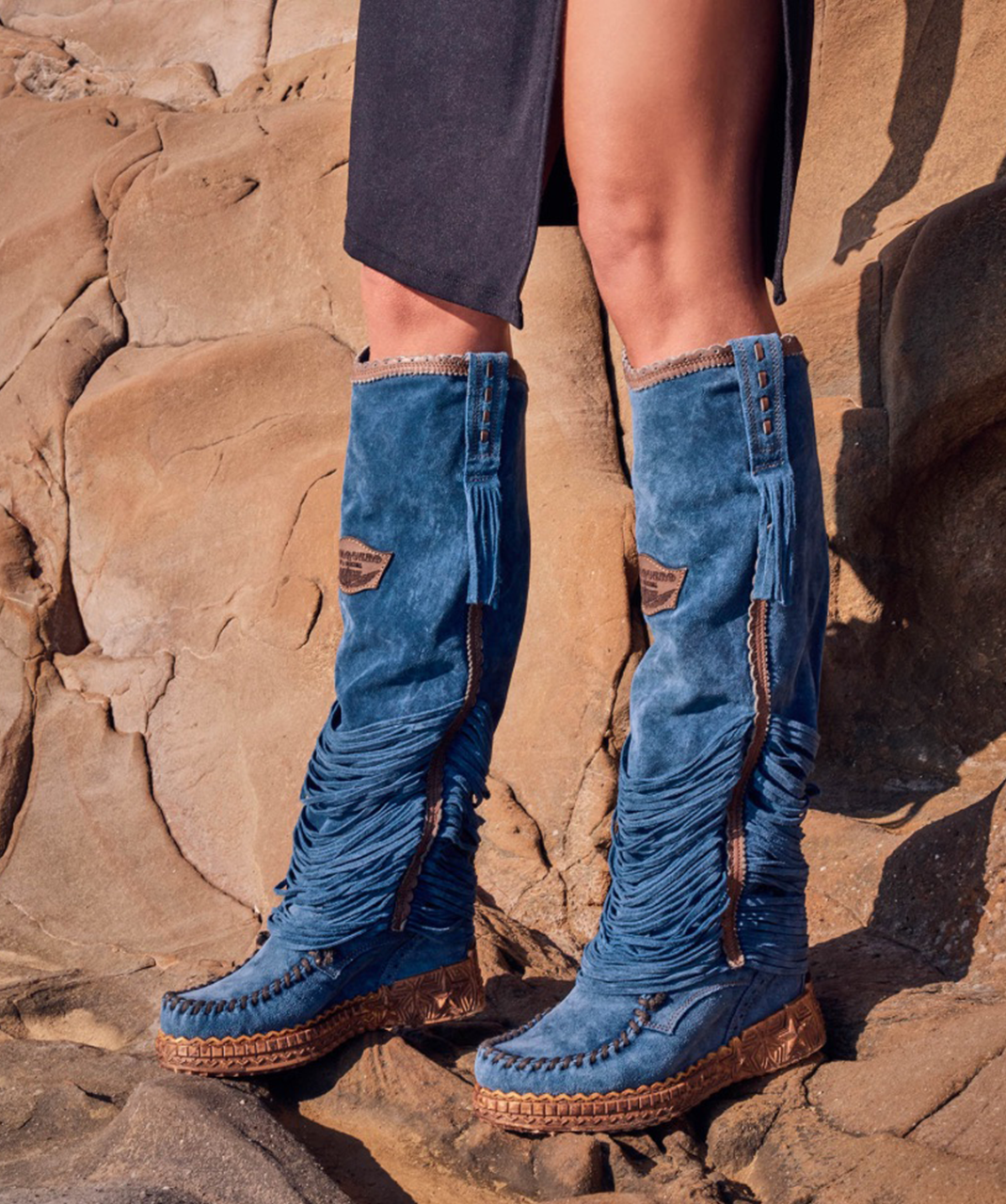 Denim wedge boots Outlet, Blue Denim Boots Wedge Heels Outlet
