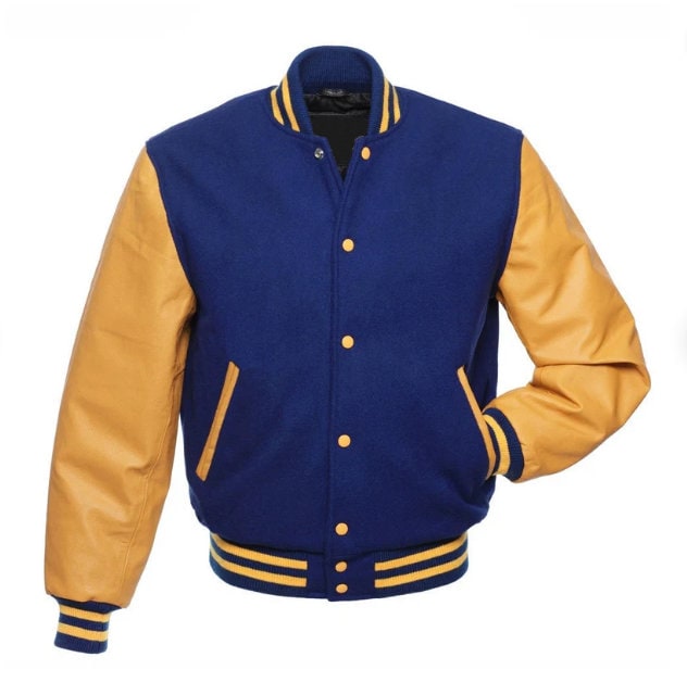 Navy and gold jacket Outlet, Royal Blue Wool/gold Leather Sleeves Varsity Jacket Letterman - Etsy Outlet