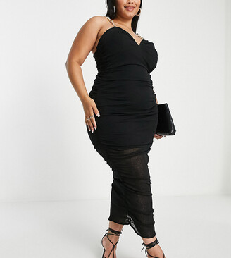 Asos curve Outlet, ASOS Curve ASOS DESIGN Curve ruched midi dress with gold chain straps in black - ShopStyle Outlet