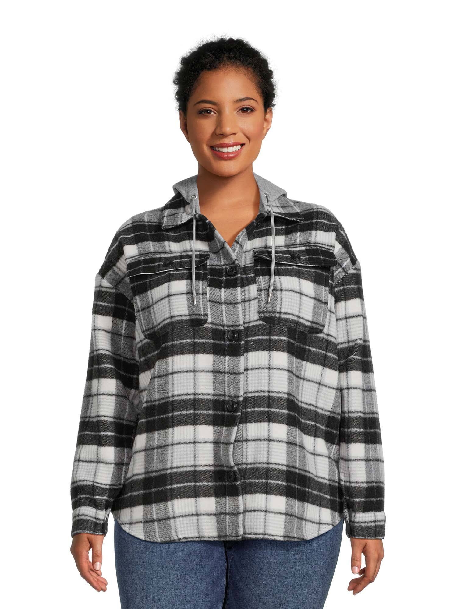 - Black and white hooded shacket clearance
