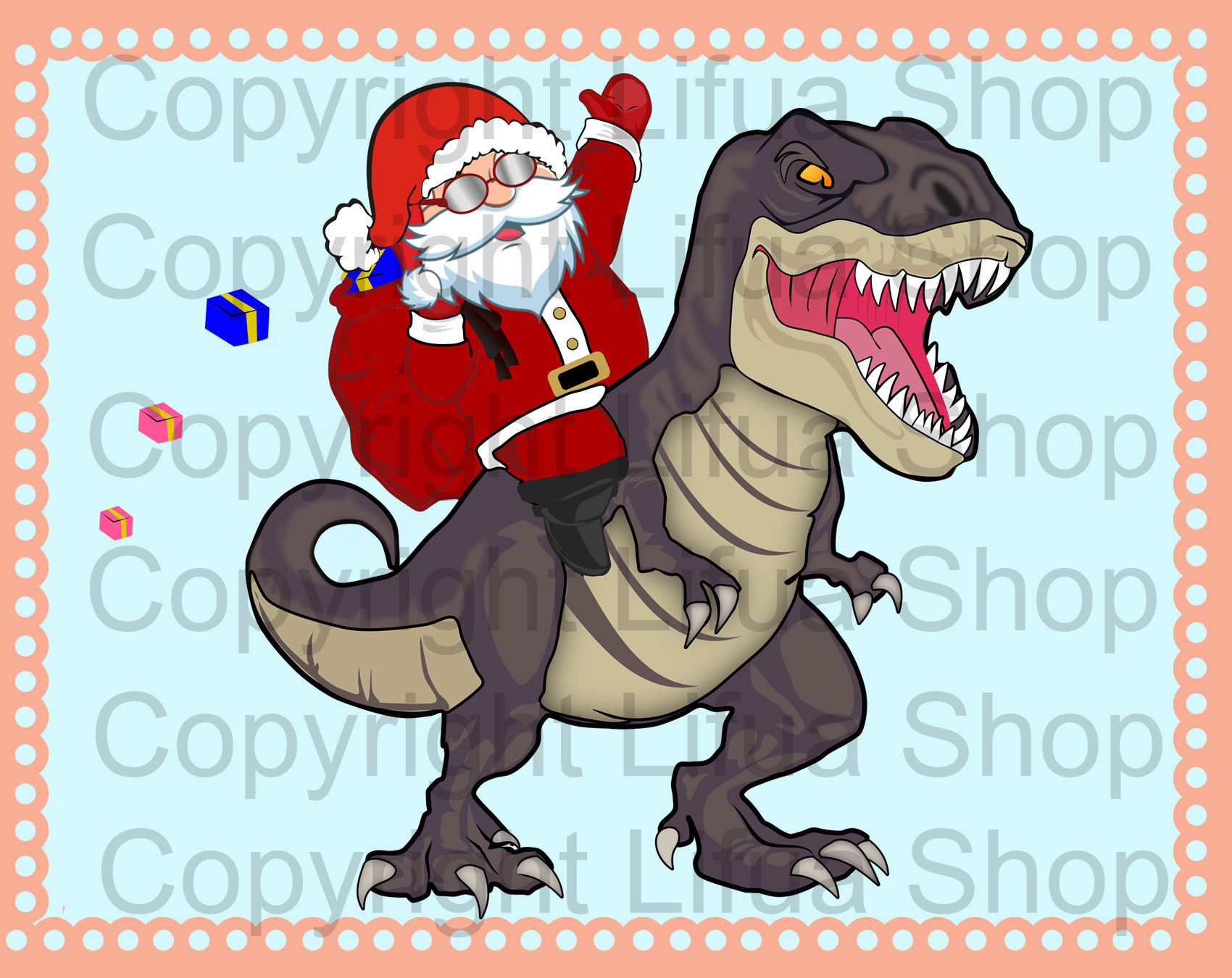 - Santa riding a dinosaur shop