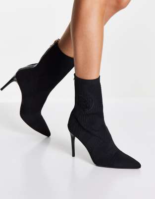 Love moschino sock boots Outlet, high heeled logo sock boots in black Outlet