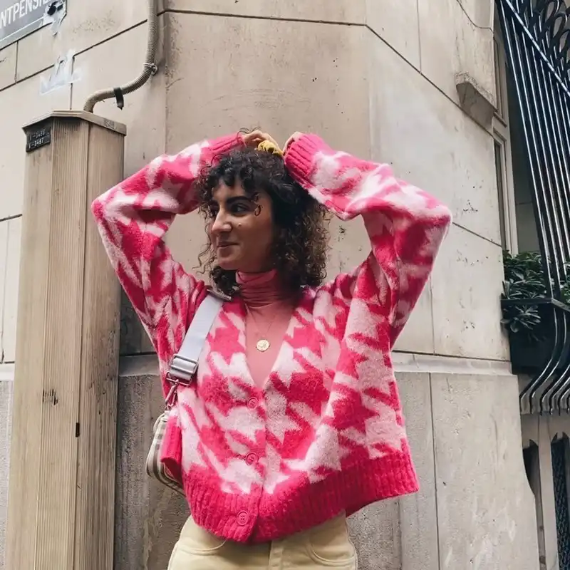 - Shopping Pink dogtooth cardigan