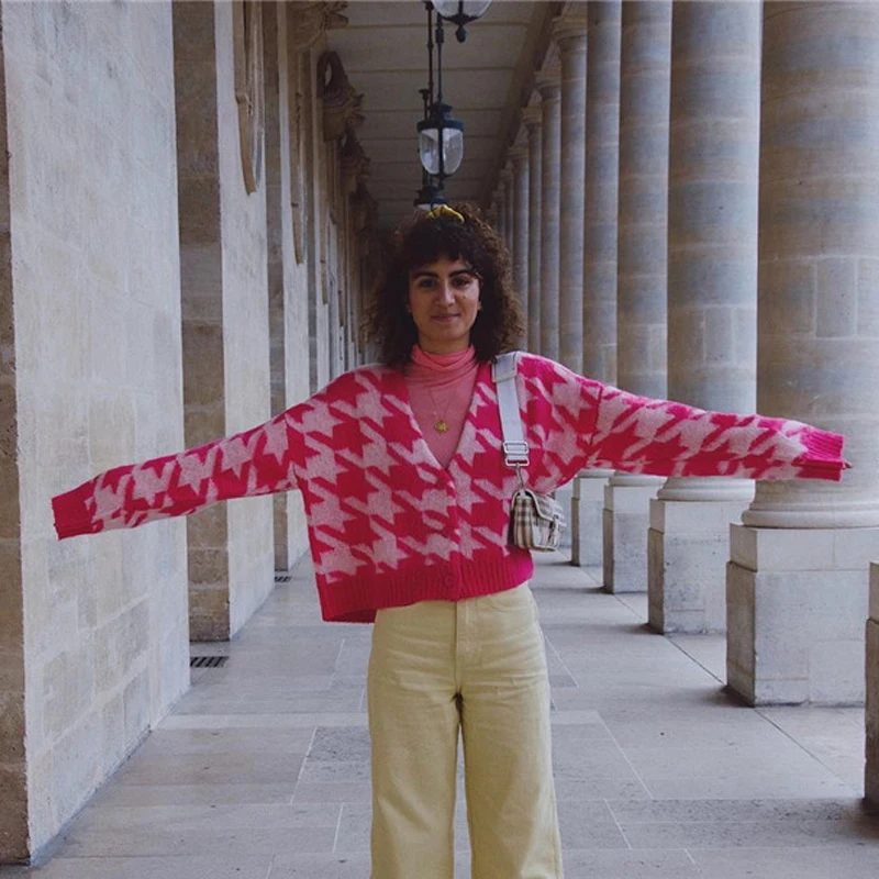 - Pink dogtooth cardigan shop