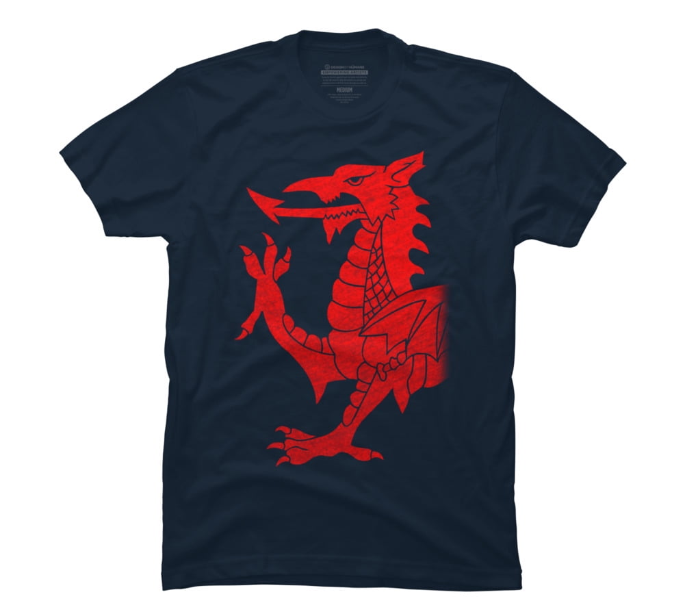 Navy blue and red graphic tee Outlet, Design by Humans - Cymru Dragon Red Outlet