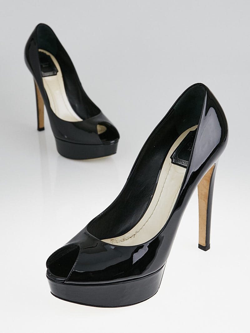 Dior peep toe pumps Outlet, Christian Dior Black Patent Leather Outlet