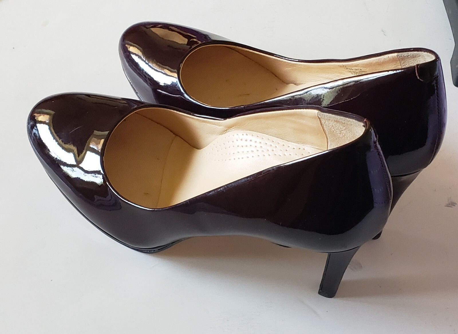 - Burgundy patent leather pumps sold