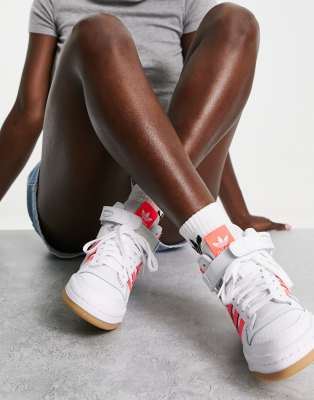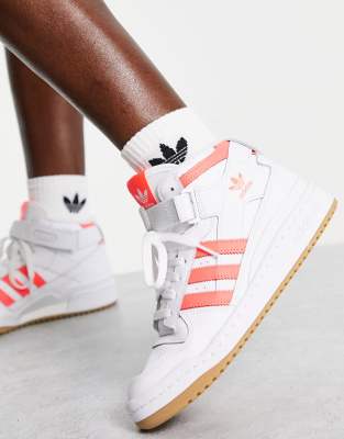 - Shopping White adidas trainers with pink stripes
