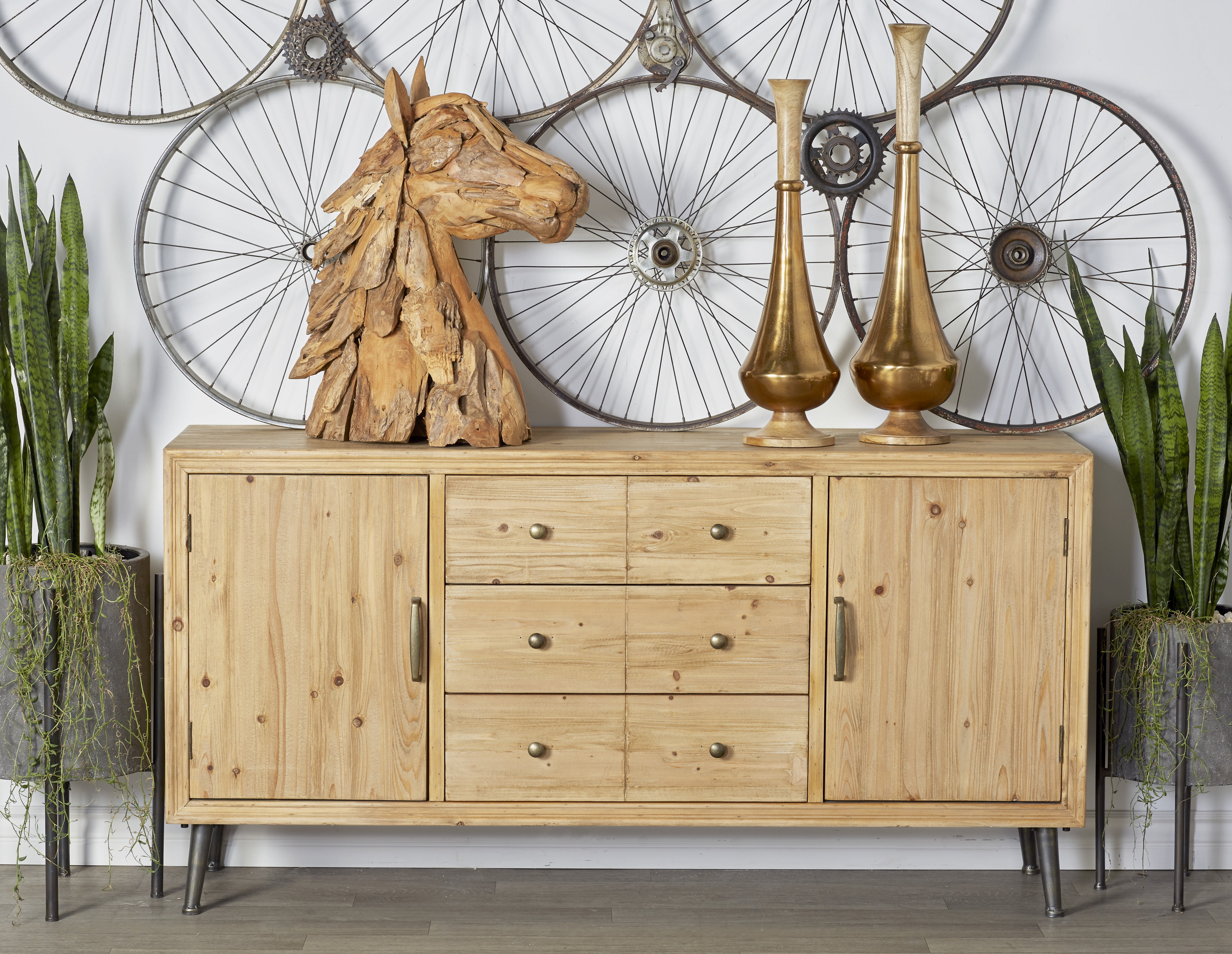 - Light brown buffet table