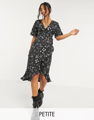 Midi wrap frill dress Outlet, Black Floral Frill Wrap Midi Dress – AX Outlet