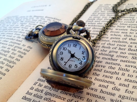 Watch necklace vintage Outlet, Pocket Watch Necklace Amber Glass Jewel Outlet