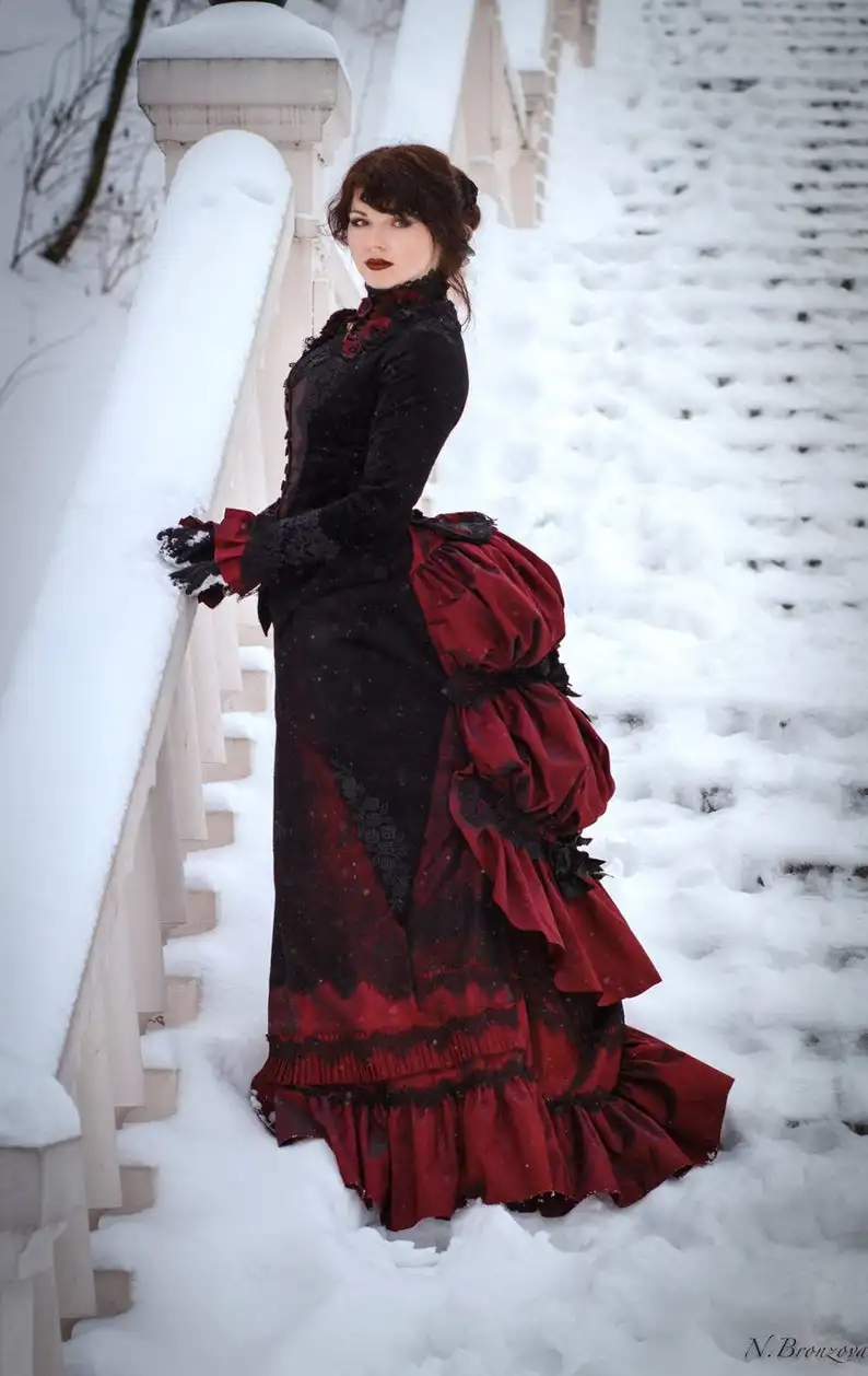 Victorian walking dress Outlet, Burgundy Gothic Wedding Dress Outlet