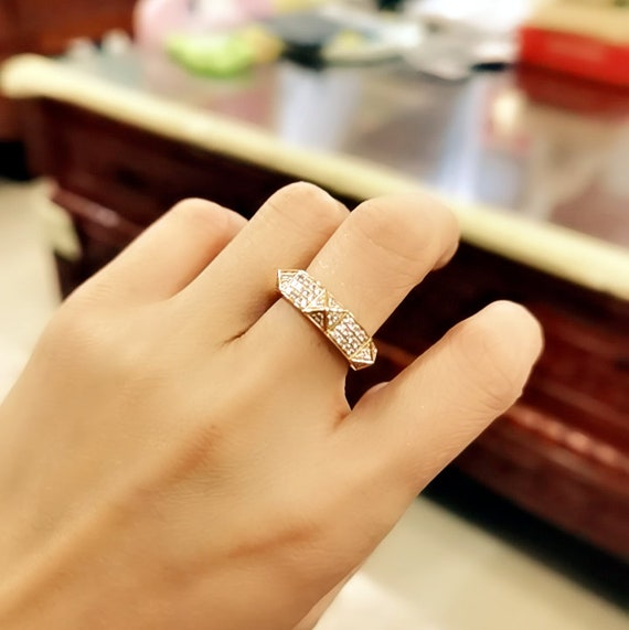 Pyramid shaped diamond ring Outlet, Vintage 18K Gold Diamond Pyramid Ring Outlet