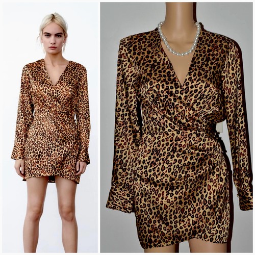 Zara leopard print wrap dress Outlet, ZARA LEOPARD WRAP CHEST LONG SLEEVED DRESS SIZE L 14/16 Outlet