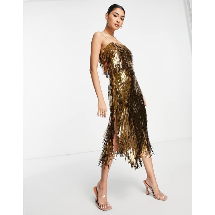 Gatsby asos Outlet, ASOS DESIGN linear embellished maxi dress with sheer skirt in multi | ASOS Outlet