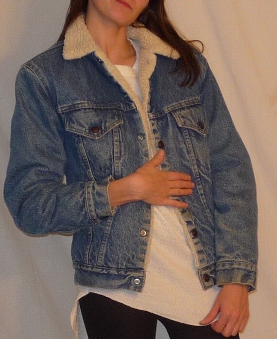 Levi sheepskin lined jacket Outlet, Vintage 1980s 80s Levis Levi Strauss shearling sherpa lined blue denim Outlet