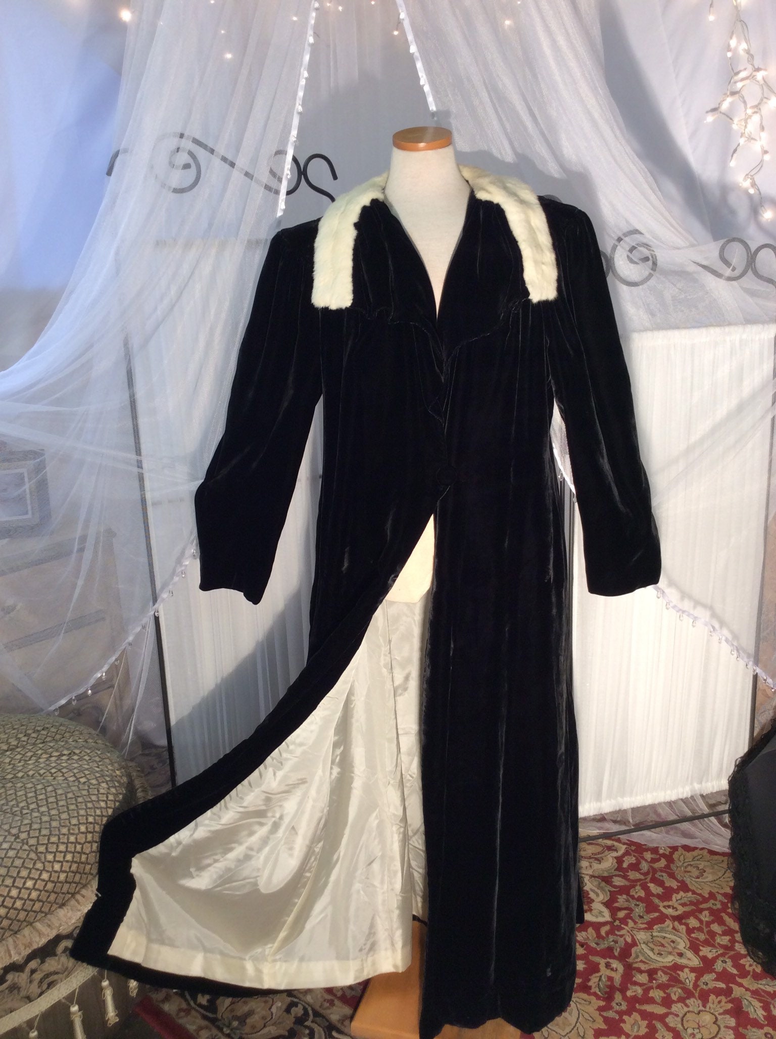 - Black velvet opera coat sale