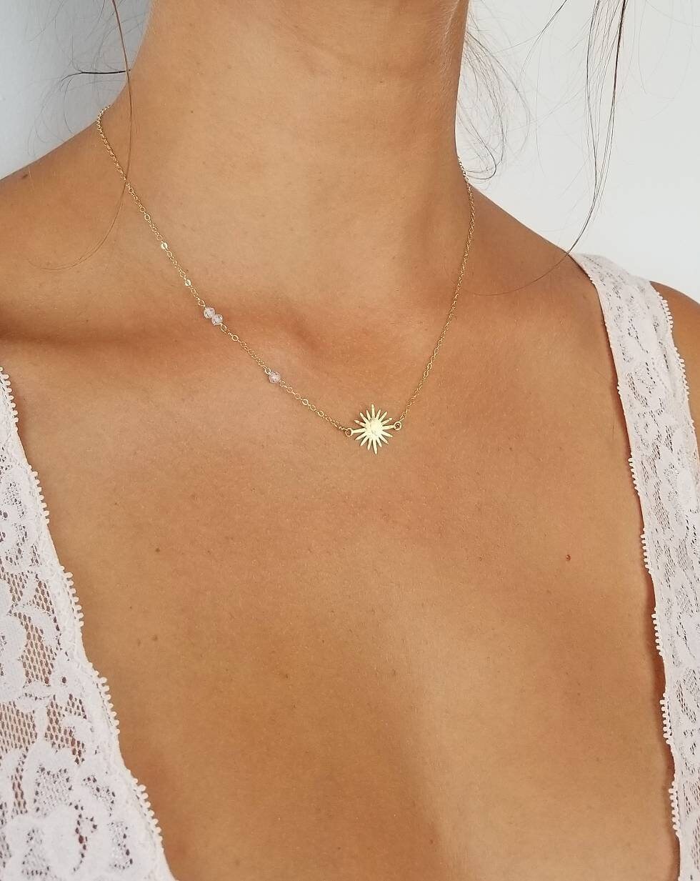 - Gold sunburst necklace shop