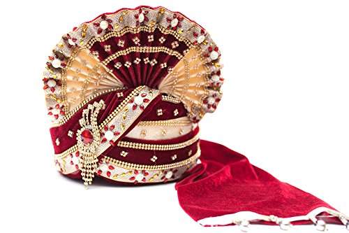 Marriage head cap Outlet, Maroon and Beige Wedding Groom Turban Outlet