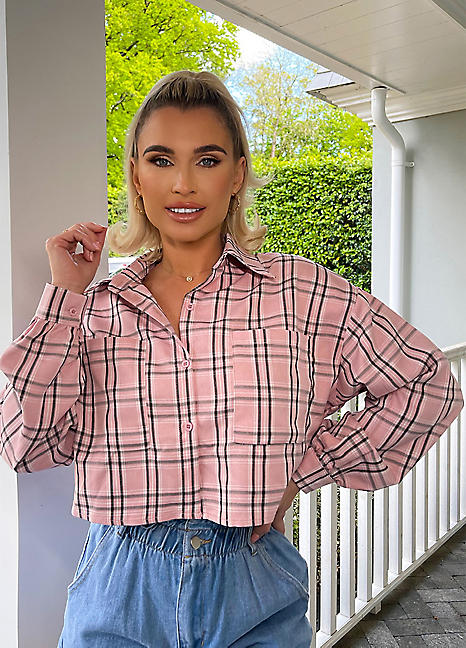 Pink checked blouse Outlet