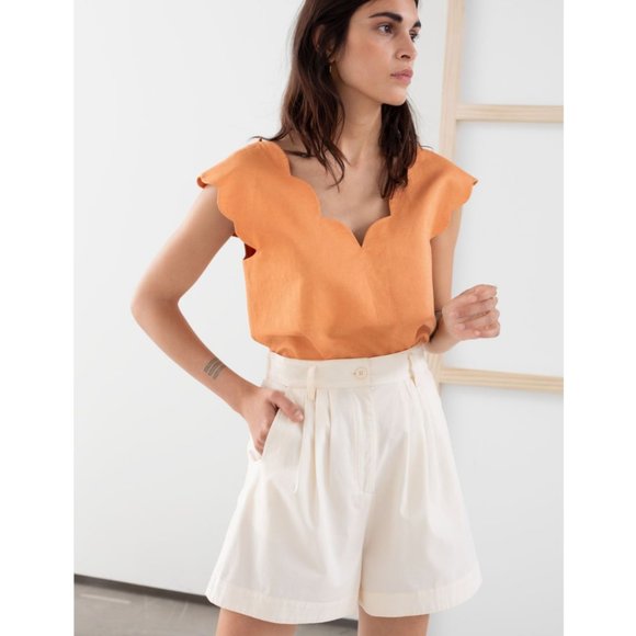 - Linen blend scalloped tank top shop