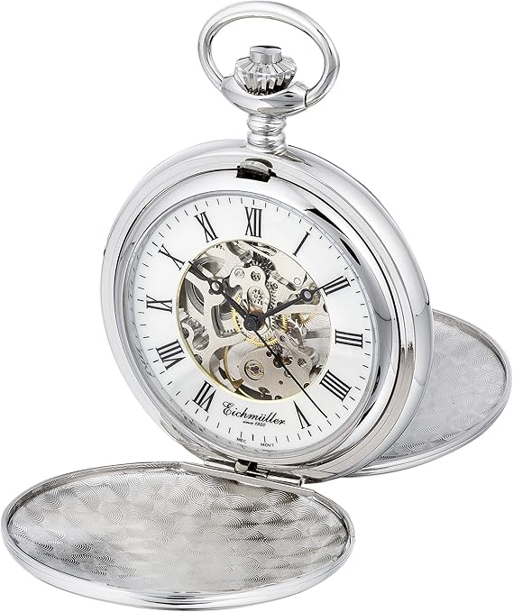 Amazon pocket watch Outlet, Puregrey Mechanical Pocket Watch, double cover, skeleton, with chain and case: Amazon.co.uk: Watches Outlet