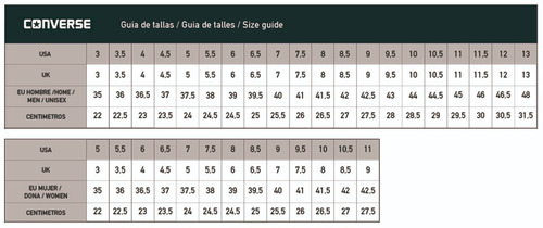 - Shopping Tabla de medidas converse mujer