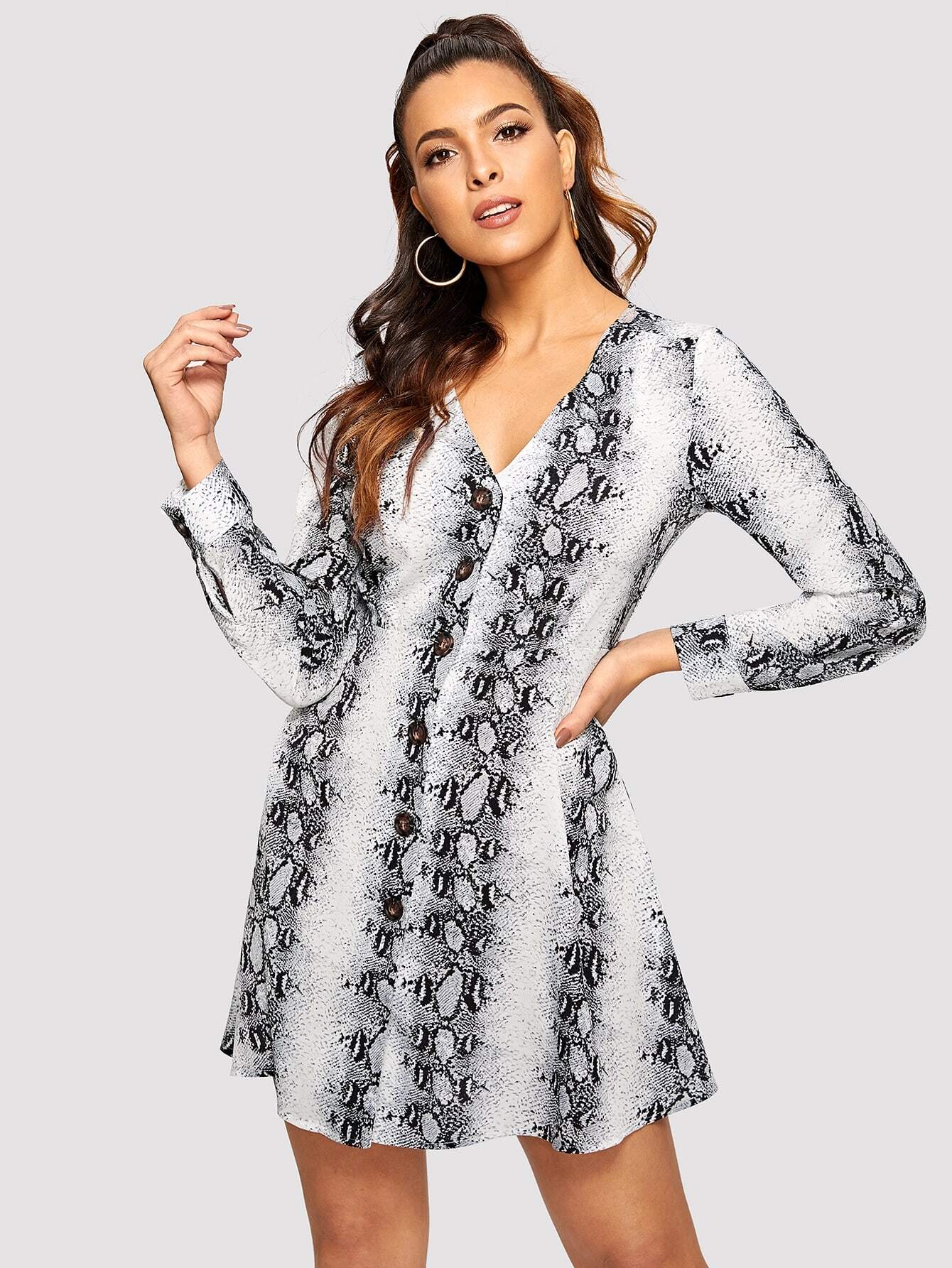 - Snake print button up dress shop