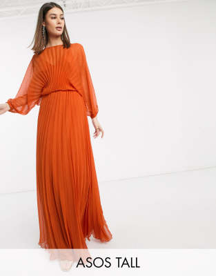 Asos orange pleated dress Outlet, ASOS DESIGN Tall Blouson pleated Maxi Outlet