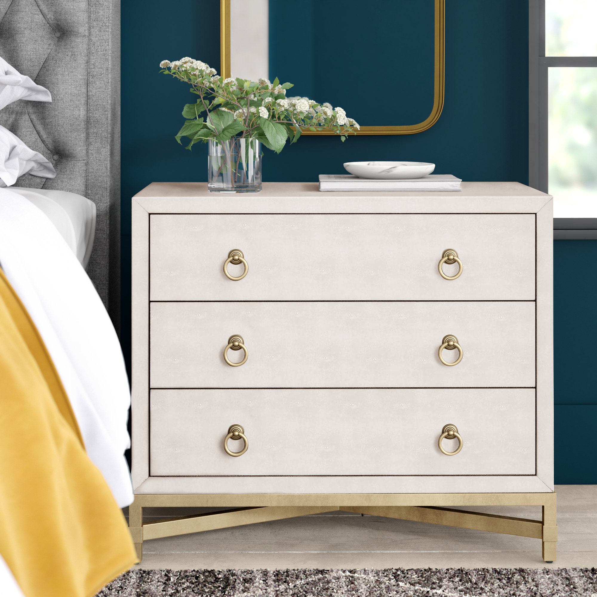 - Shopping White and gold 3 drawer nightstand