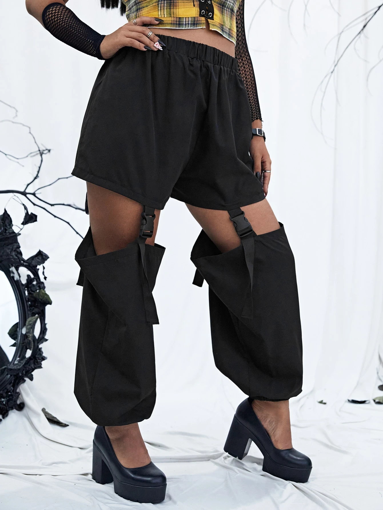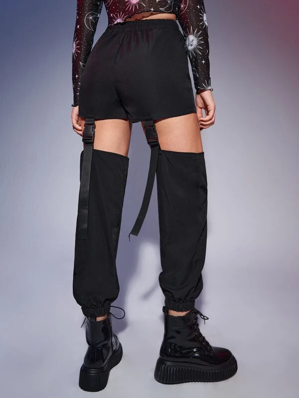 Cut out buckle pants Outlet, Solid Cut Out Buckle Tape Pants | ROMWE USA Outlet