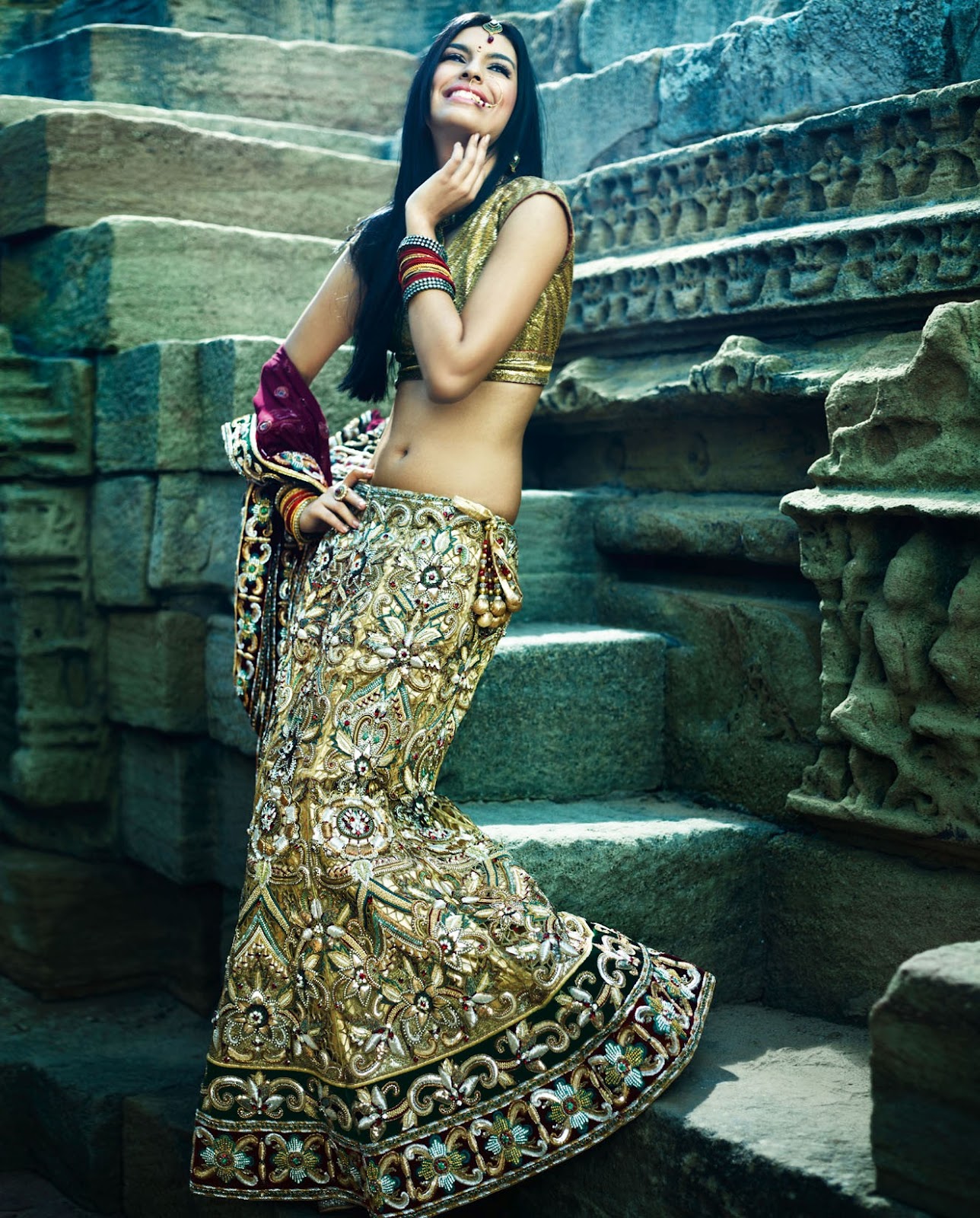 Choli daman Outlet, DAMAN CHOLI: Lava Red Open Front Kurta Outlet