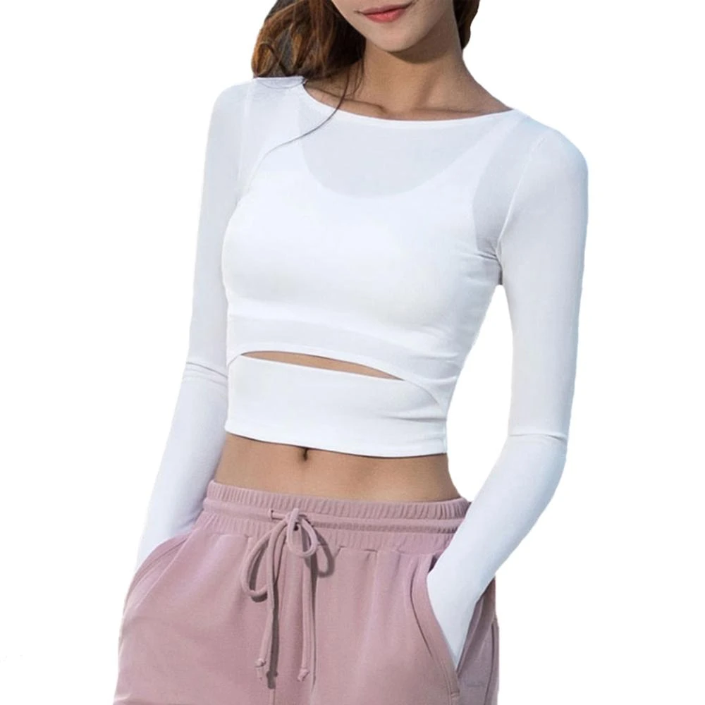 White long sleeve workout top Outlet, 2019 Women Gym White Yoga Crop Tops Outlet
