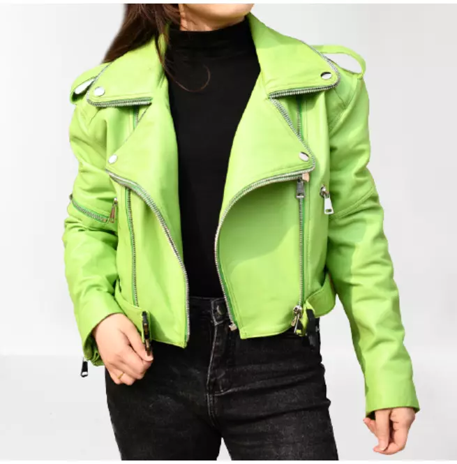 Lime green leather jacket Outlet, Light Green Leather Jacket for Women, Biker Fashion | RebelsMarket Outlet