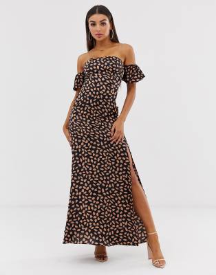 - Off shoulder maxi dress with thigh split shop