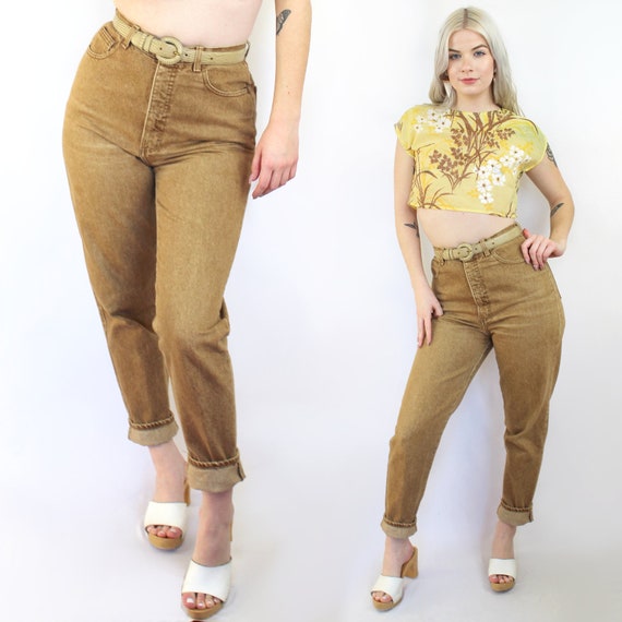 Tan high waisted jeans Outlet, 90s camel tan high waist jeans BONJOUR Outlet
