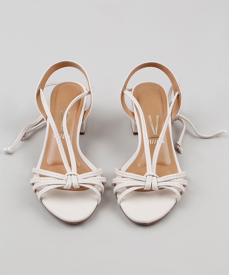 Sandália vizzano amarração bege Outlet, Sandália Feminina Vizzano Salto Grosso com Amarração Bege Claro Outlet