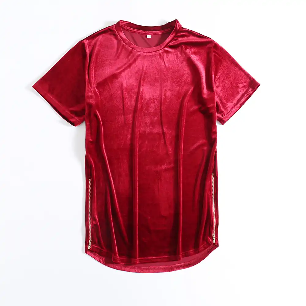 Camisa de veludo vermelha masculina Outlet, Camiseta de veludo masculina, camiseta grande de veludo com zíper lateral, para homens, vermelho/azul/camisetas pretas de manga curta velour|Camisetas| - AliExpress Outlet